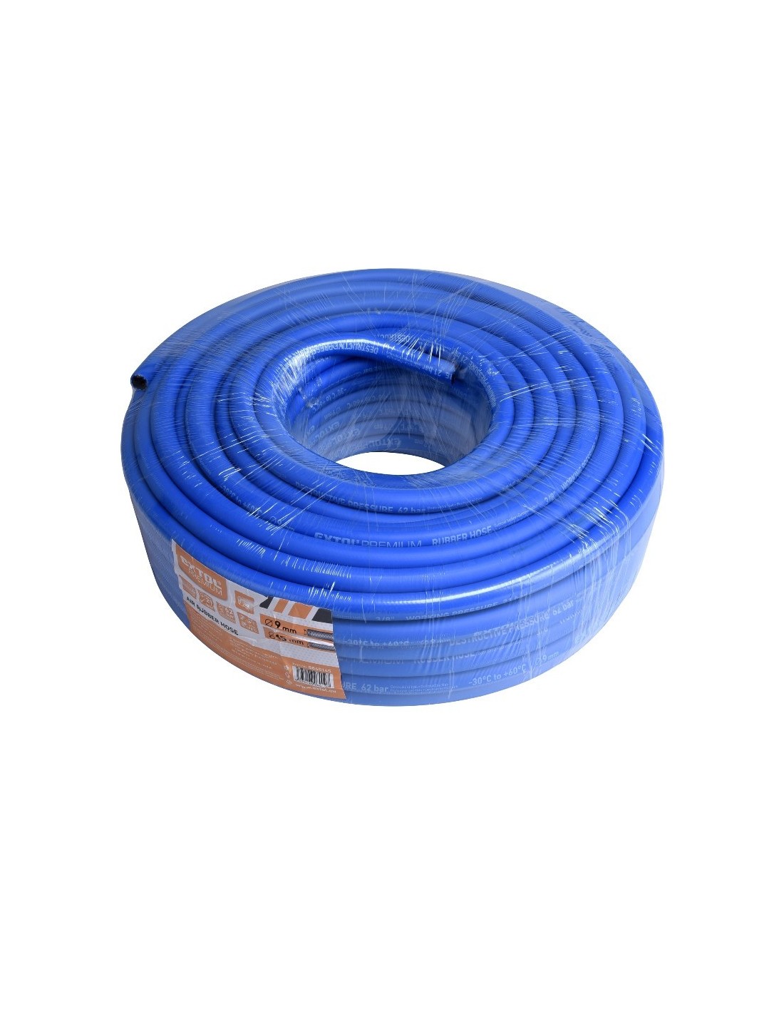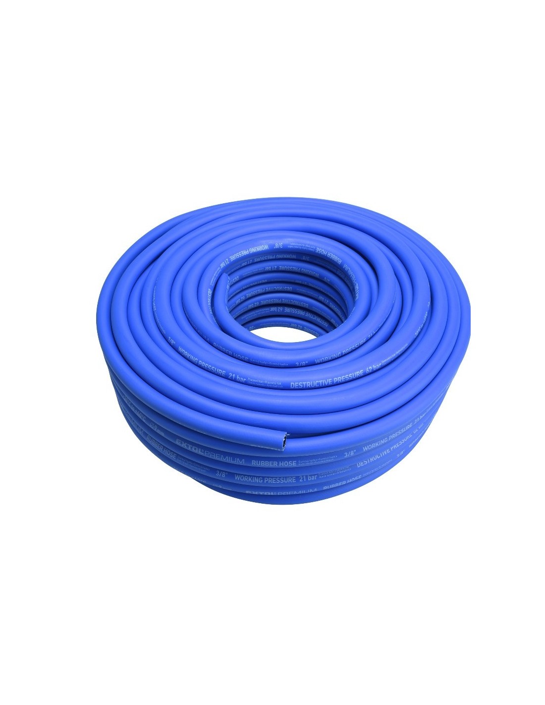 Furtunul pentru aerul comprimat, Extol Premium, are o lungime de 50 metri, fabricat din cauciuc, cu o conectare de 3/8" inch. Furtunul pentru aer are o presiune maxima de 21 bar.