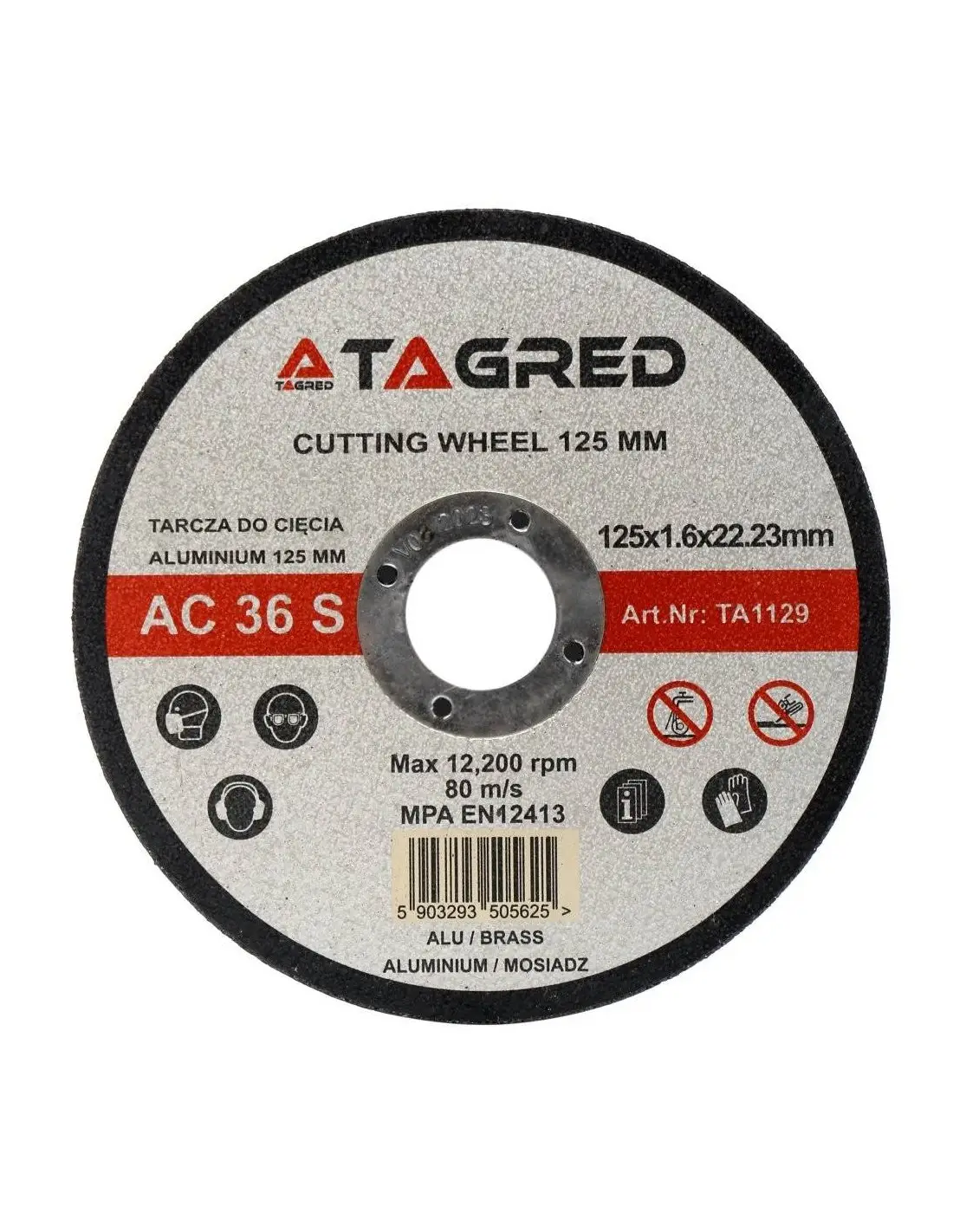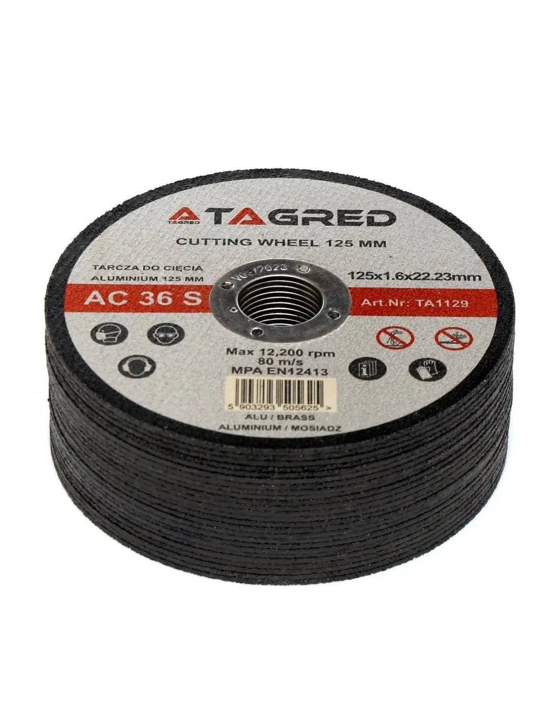 Disc circular Tagred TA1129 pentru taierea metalului, aluminiului si alamei, cu diametru de 125 mm si grosime de 1.6 mm. Potrivit pentru lucrari de precizie, ofera durabilitate ridicata si compatibilitate cu polizoare standard.