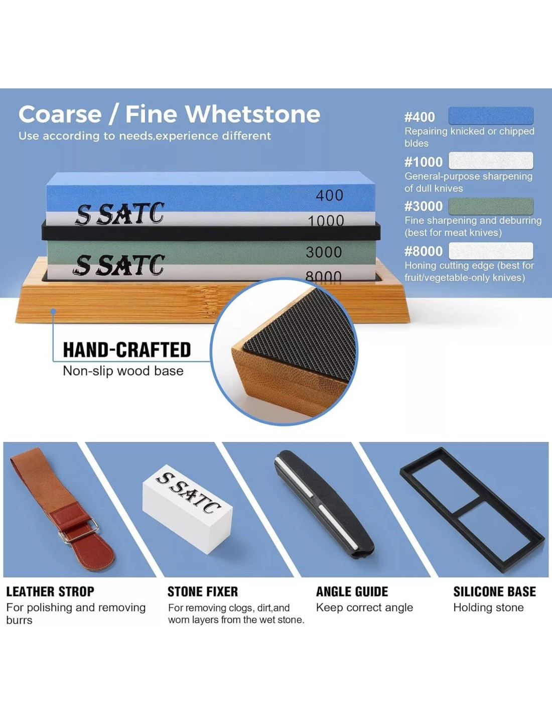 Granulatia 400 este pentru repararea lamelor deteriorate, 1000 pentru finisarea muchiei de taiere, 3000 pentru netezire fina, iar 8000 pentru lustruire si finisaj de tip oglinda.