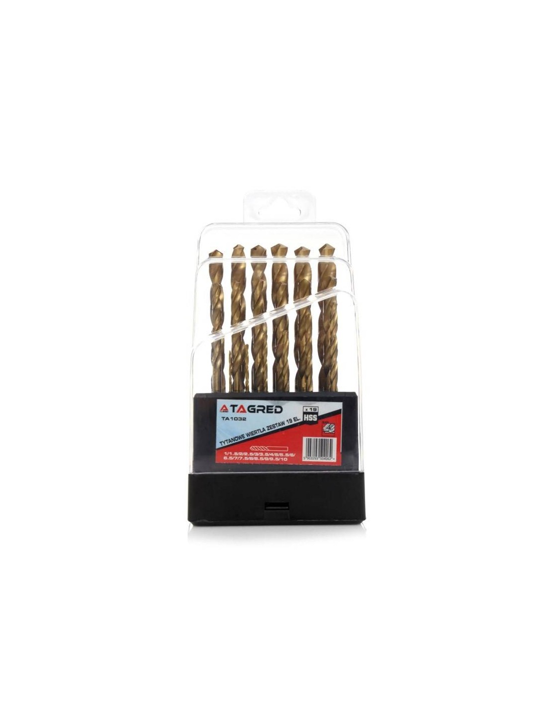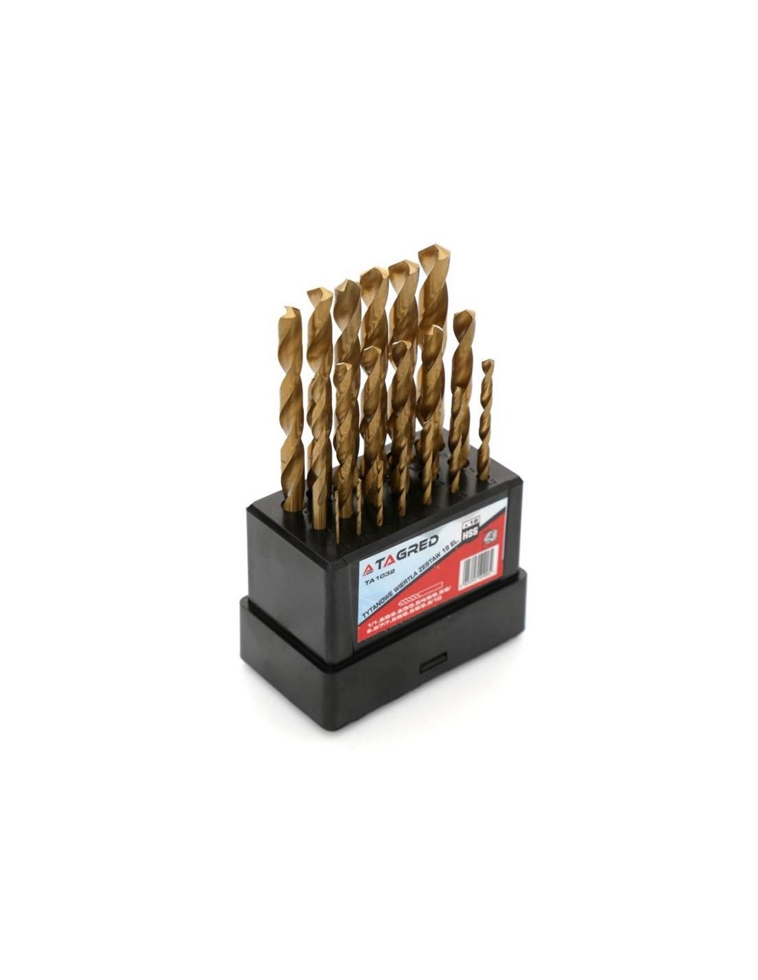 Setul, de la Tagred, este format din 19 burghie de dimensiuni 1-10 mm, realizate din metal cu acoperire din titan. Sunt potrivite pentru gaurirea in otel, fonta, metale si materiale plastice. Burghiele din titan, spre deosebire de burghiele albe, se caracterizeaza printr-o rezistenta mai mare si o abraziune mai mica. Burghirlr au un unghi de varf de 130°, inseamna ca nu este necesara marcarea gaurilor inainte de gaurirea corespunzatoare.
