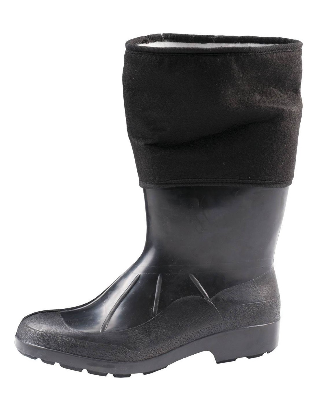 Cizme de lucru captuşite cu pasla din poliester, talpa din cauciuc, antiderapanta, fete din cauciuc şi pasla din poliester.