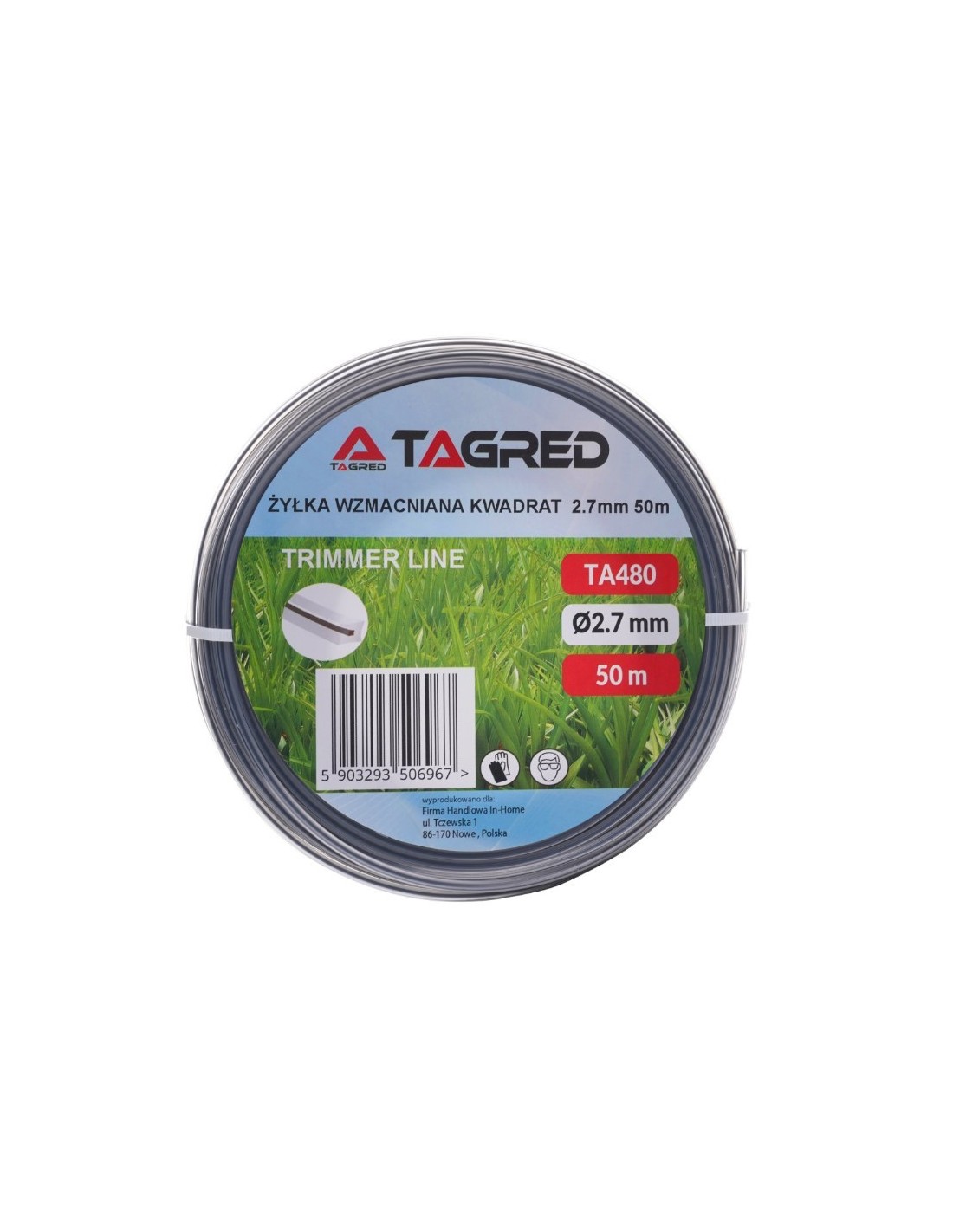 Fir motocoasă / trimmer, Tagred, pătrat, 2.7 mm x 50 m, inserție oțel, gri, TA480