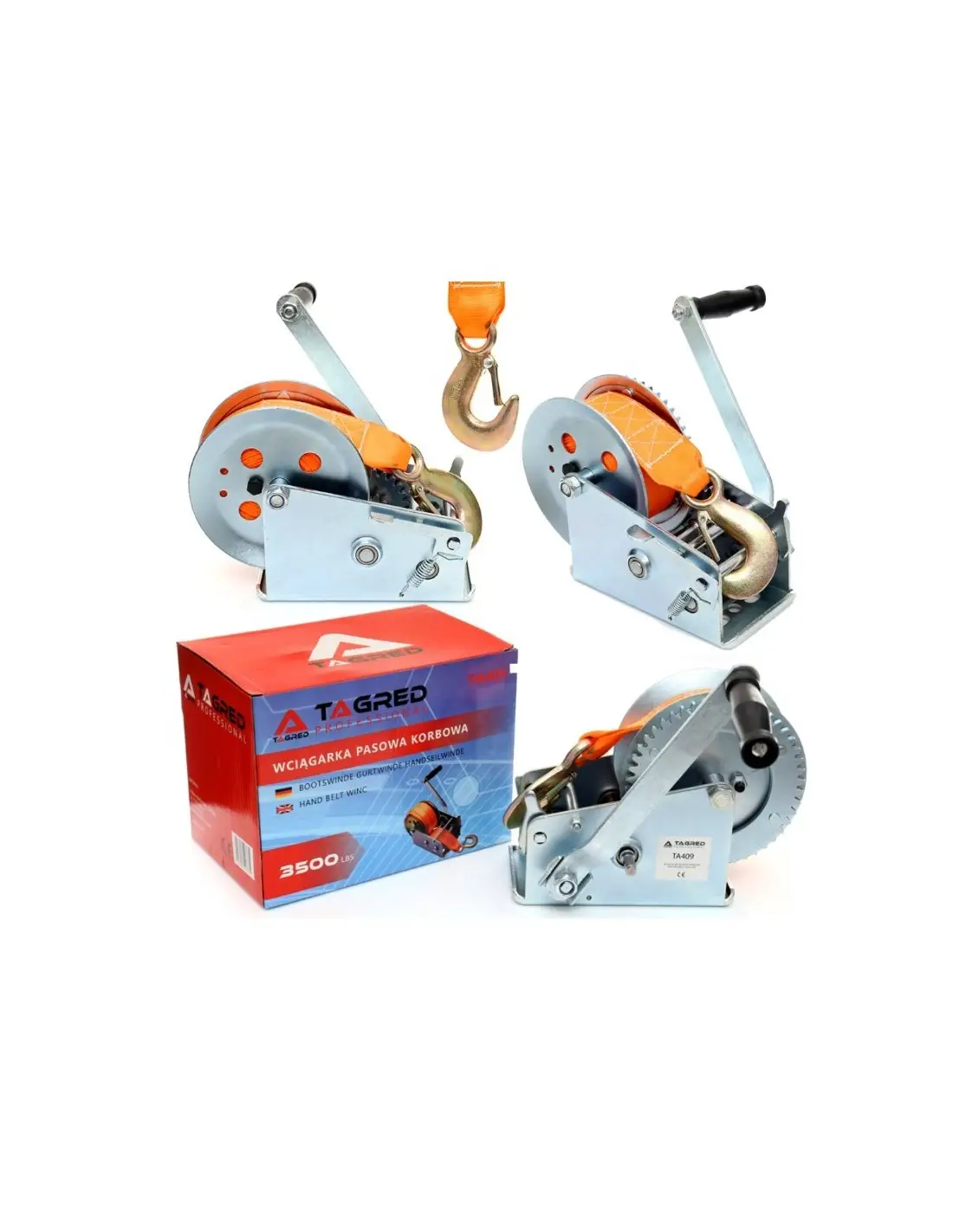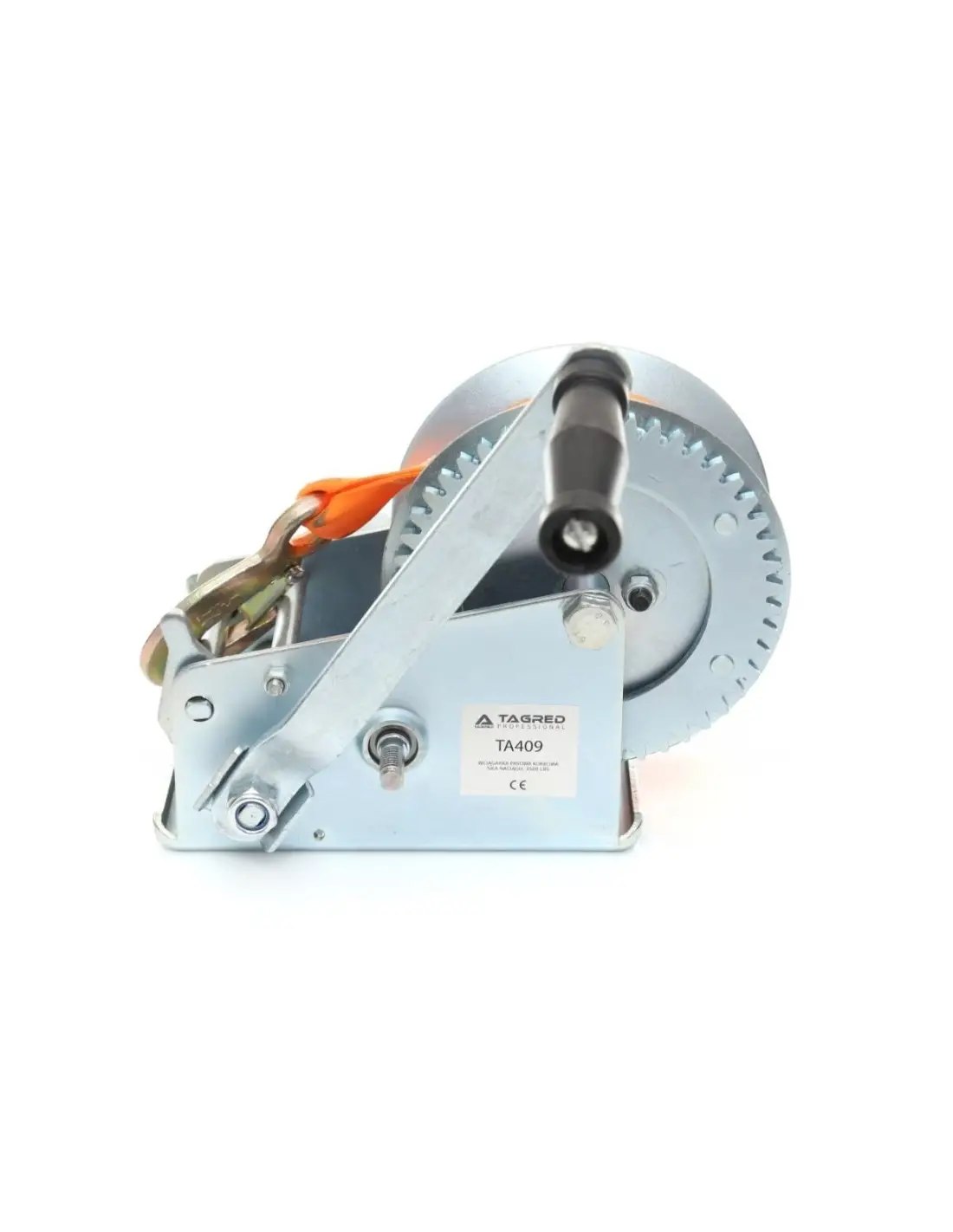 Troliu auto, manual, Tagred, sarcina maxima de 1588 Kg (3500 lb), cu banda cu lungimea de 10 m si mecanism cu clichet cu doua sensuri.
