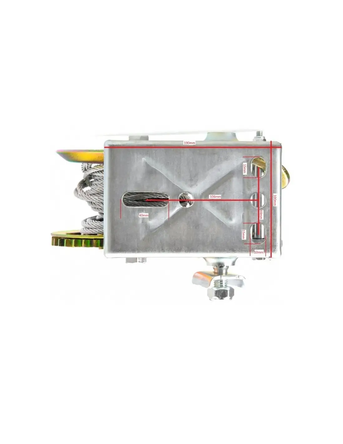 Troliul este controlat de o manivela cu un mecanism cu clichet care faciliteaza tragerea si coborarea obiectelor mari si grele.