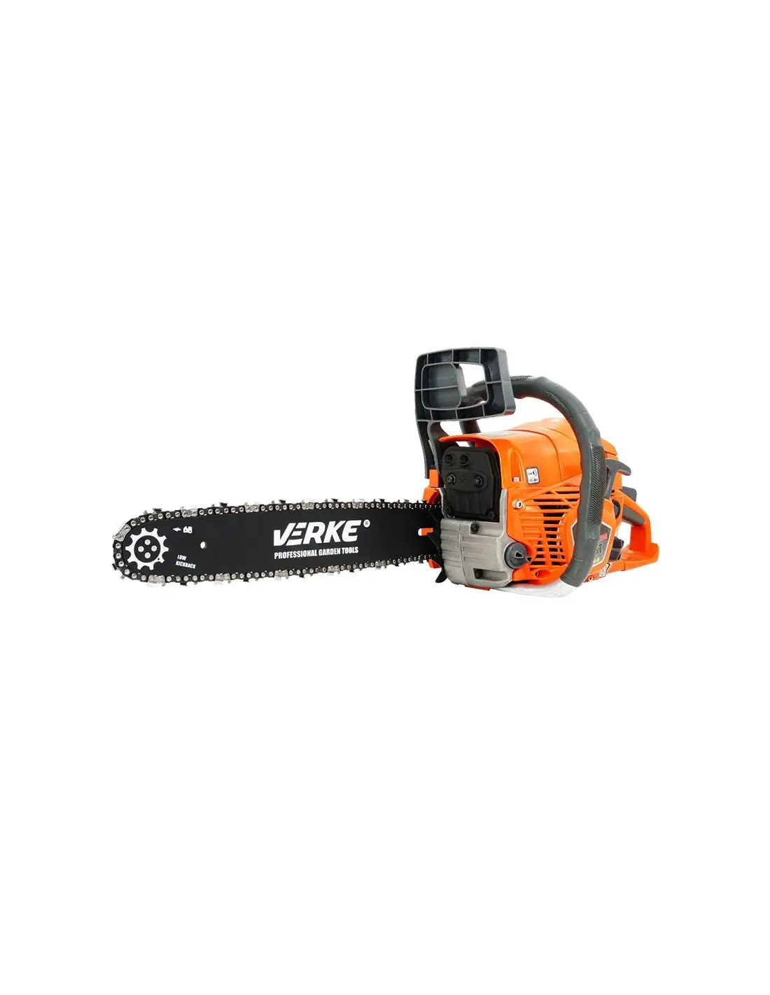 Verke V90011 este un fierastrau cu lant pe benzina, echipat cu motor puternic de 65 cm³ si putere maxima de 4.35CP. Ghidajul de 38 cm impreuna cu lantul profesional tip 21BP/21VB cu pas 0.325" si canelura de 1.5 mm asigura o taiere precisa si rapida. Constructia robusta si echilibrata il recomanda pentru utilizatori profesionisti, dar si pentru lucrari gospodaresti. Nivelul redus de vibratii si manevrabilitatea buna fac din acest fierastrau o alegere eficienta si fiabila.