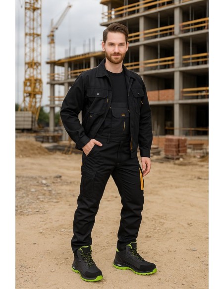Talie elastica in partea din spate imbunatateste potrivirea pe corp si libertatea de miscare, iar bretelele reglabile permit ajustarea usoara in functie de statura. Salopeta este echipata cu multiple buzunare functionale, inclusiv buzunare pe piept, laterale, spate si buzunar de scule pe picior, fiind gandita pentru eficienta maxima in timpul lucrului.