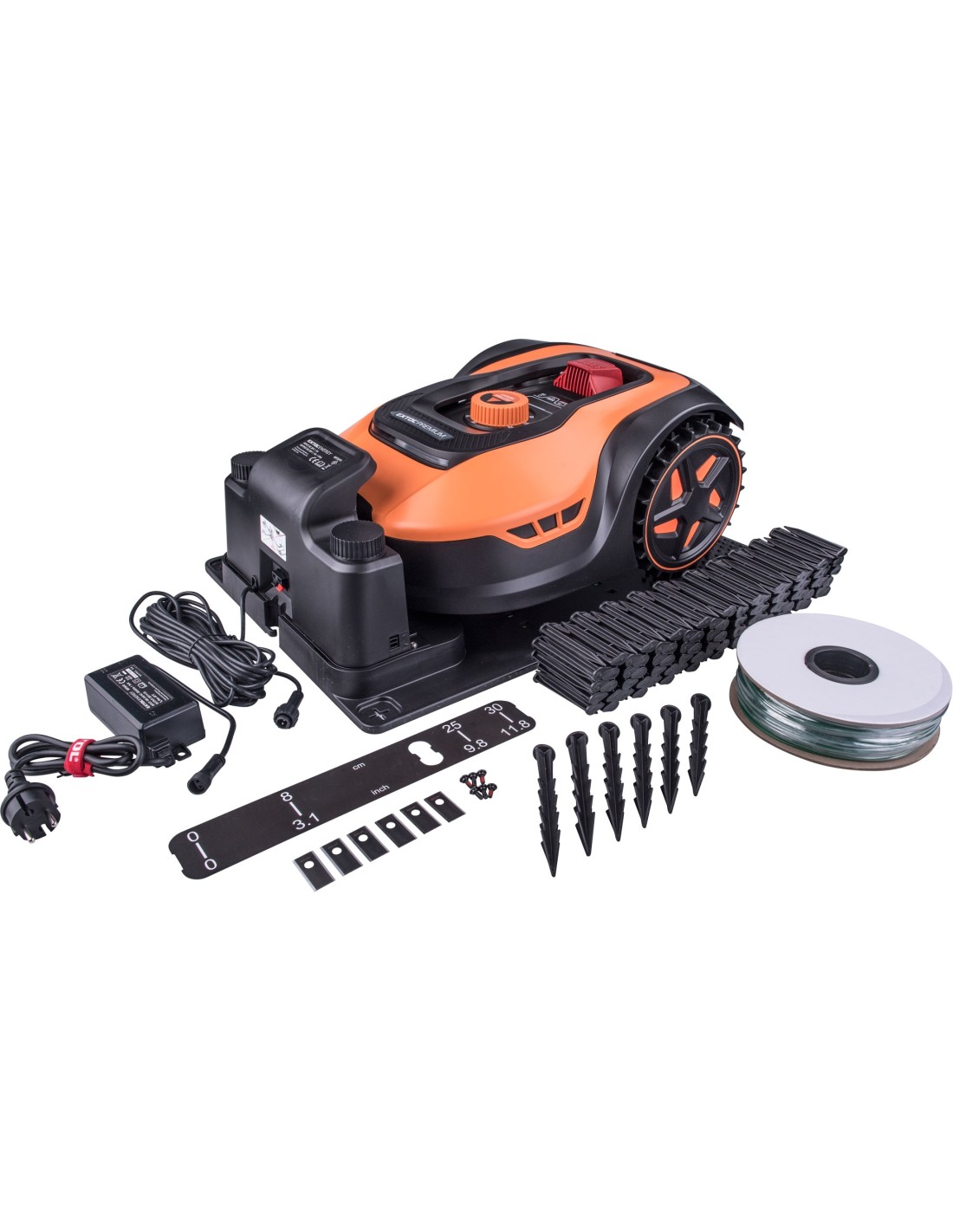 Masina de tuns iarba robotizata cu baterie Li-ion, suprafata de lucru 600 m², control manual sau prin aplicatie, incarcare automata si senzor de ploaie.