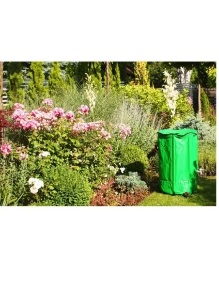 Apa colectata poate fi utilizata in doua moduri: prin deschiderea fermoarului pentru a prelua apa pe partea de sus sau puteti desuruba robinetul si conecta un furtun la acesta.