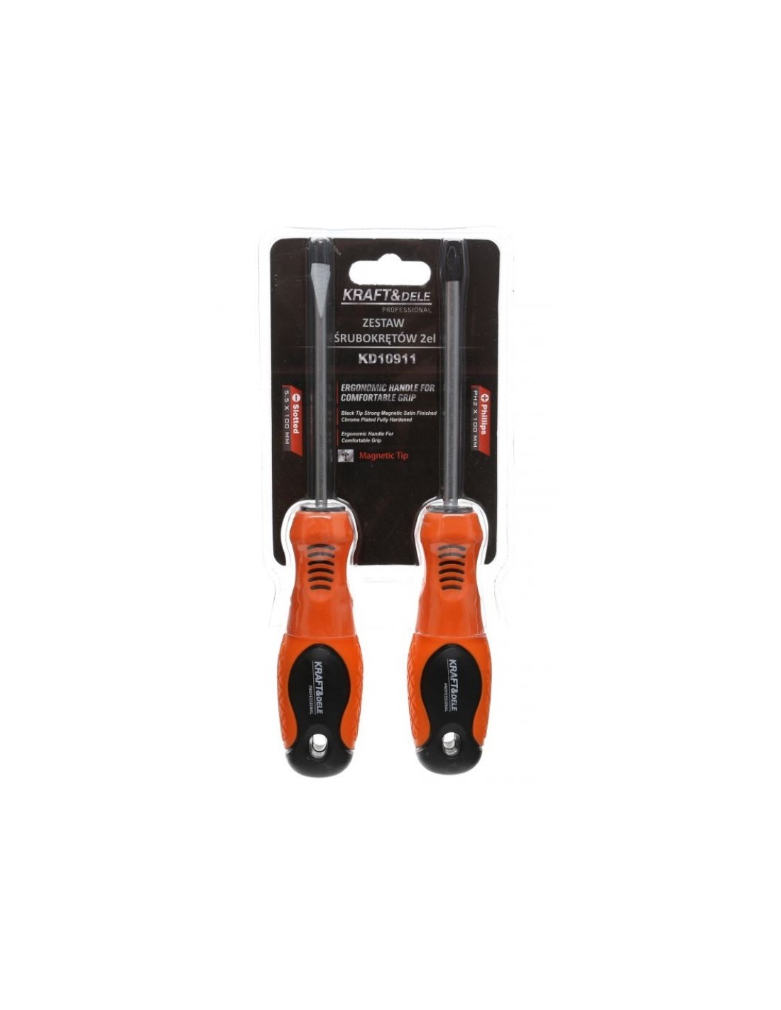 Setul Kraft&Dele KD10911 contine doua surubelnite esentiale pentru activitati uzuale de insurubare. Include o surubelnita plata si una Phillips, ambele cu lungimea tijei de 100 mm.