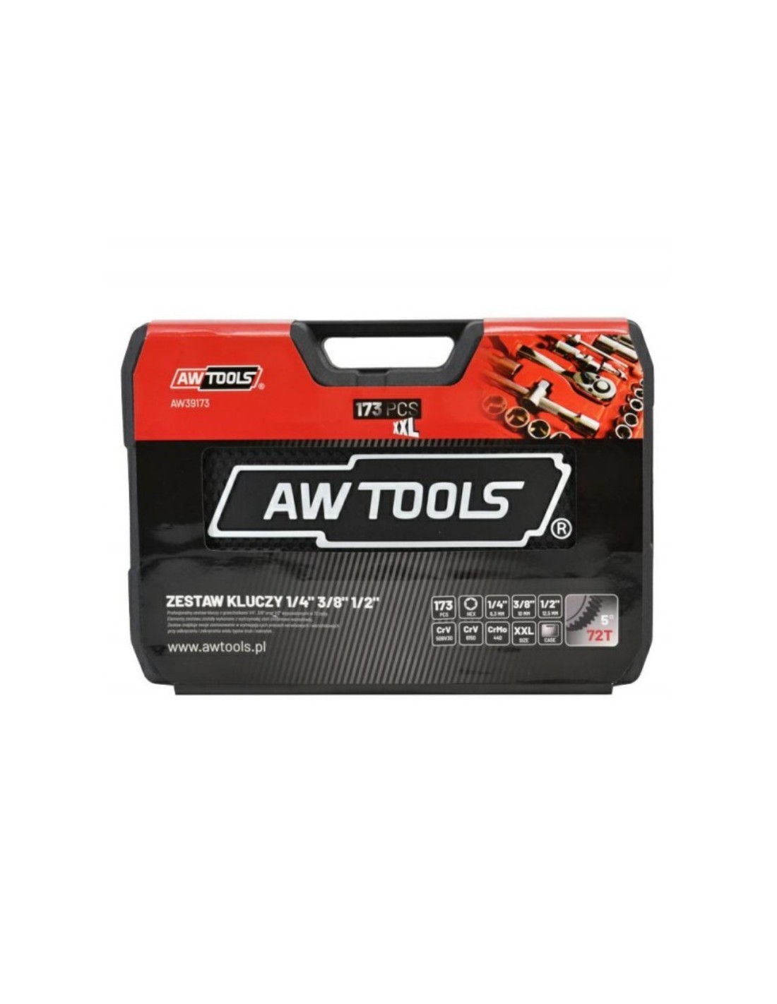 Trusa scule, AWTools AW39173, chei cu clichet, 1/4'' 3/8'' 1/2'', 173 piese